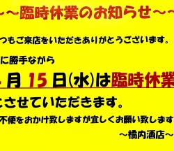 【 橘内酒店 臨時休業のお知らせです 】…≫