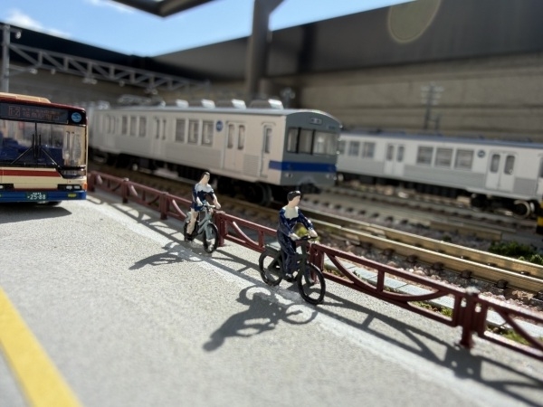 小学校の通学電車だった飯坂線。中学になり線路横を自転車で通学した事を再現して欲しいと娘たちからのリクエストで作りました。娘たちが大人になった今は飯坂線で帰省します。いつまでも思い出の飯電です。