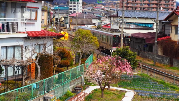 終点飯坂、季節は春、暖かくなりましたね。歴史の町飯坂、ちゃんこ、ちゃんこの階段73段降りました。歴史を求めて歩くのも面白いと思います。