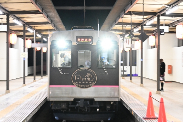 終点の飯坂温泉駅にて発車を待つ1000系。