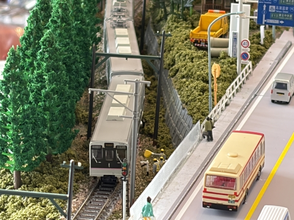 小学校の通学電車だった飯坂線。中学になり線路横を自転車で通学した事を再現して欲しいと娘たちからのリクエストで作りました。娘たちが大人になった今は飯坂線で帰省します。いつまでも思い出の飯電です。